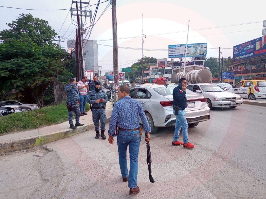 El percance también movilizó a elementos de Seguridad Pública Municipal y Policías Municipales, ya que algunos ciudadanos reportaron la presencia de civiles armados, sin embargo, se trataba de agentes de la División de Investigación de la PGJEH, quienes sometieron al causante del incidente para que no se diera a la fuga.