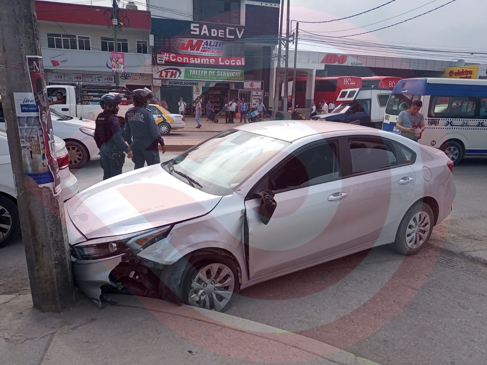 El incidente ocurrió la tarde de este miércoles frente a la central de autobuses ADO, donde un coche Forte Kia de color gris, con placas de circulación ULY-132-B del estado de San Luis Potosí, embistió una unidad de dos ruedas, resultando lesionada una mujer.