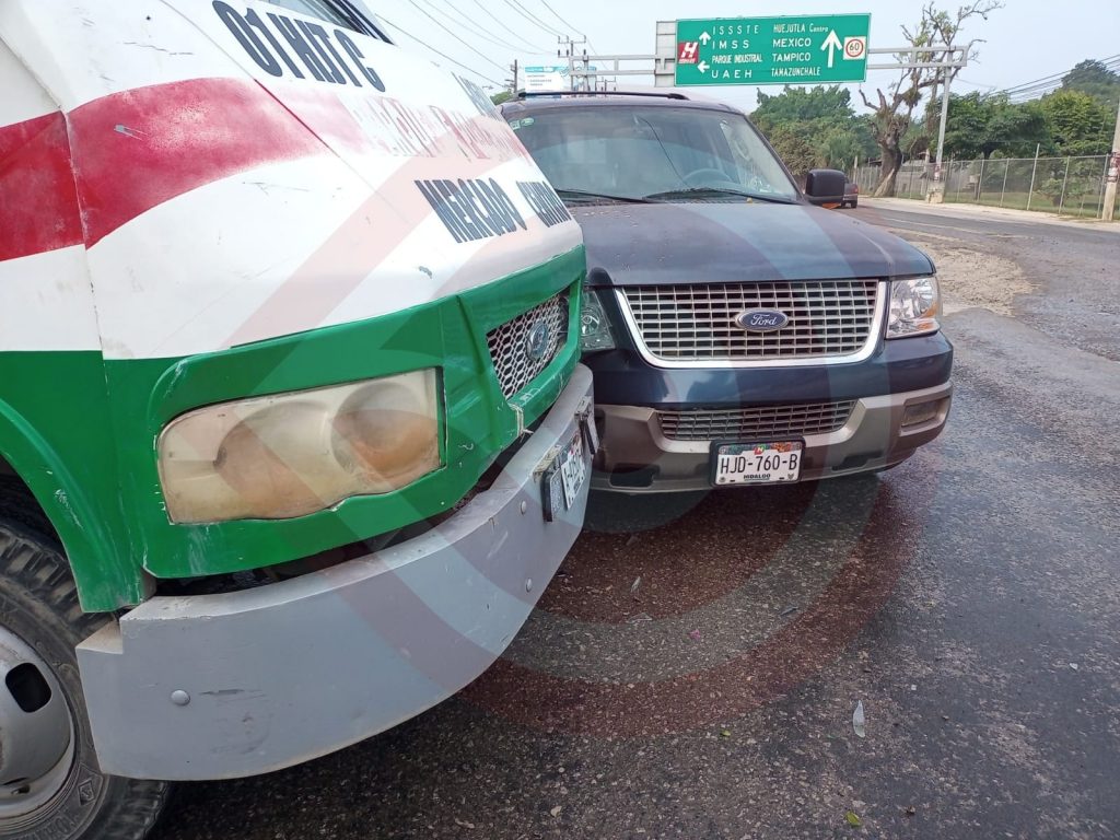 El incidente sucedió alrededor de las 09:15 horas de la mañana de este miércoles, en la carretera estatal Huejutla-Chalahuiyapa, justo frente a la bodega de la empresa Coca Cola, donde un vehículo de la marca Ford tipo Expedition de color azul, con placas de circulación HJD-760-B del estado de Hidalgo, se impactó contra un microbús de la marca Ford, marcado con el número económico 20 y láminas metálicas A-41507-K del estado de Hidalgo.