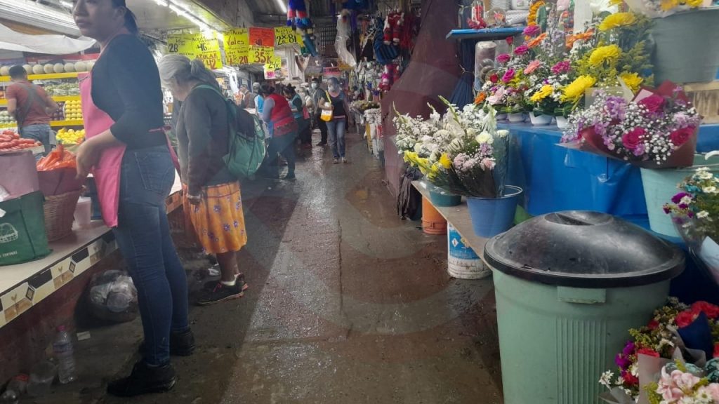 Agregaron que, una de las zonas que más afluencia de personas ostenta a diario, es el de venta de enchiladas de canasta y en la mañana la parte proporcional del pasillo del sector correspondiente al área del laminado estaba enlodado, como cualquier sendero a cielo abierto.