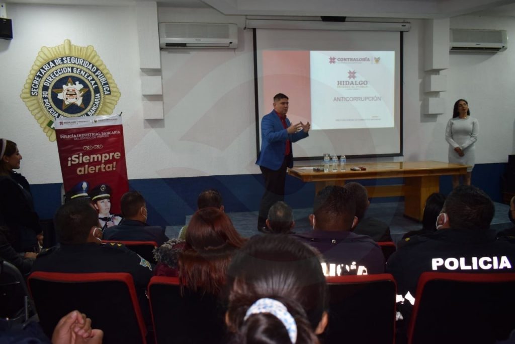 Pachuca de Soto, Hgo. – En el marco del Día por la Integridad y en conmemoración por el Día Internacional del Combate a la Corrupción, la Policía Industrial Bancaria del Estado de Hidalgo (PIBEH), llevó a cabo la plática anticorrupción, misma que tuvo como objetivo generar conciencia entre el personal operativo de esta corporación para combatir este delito.