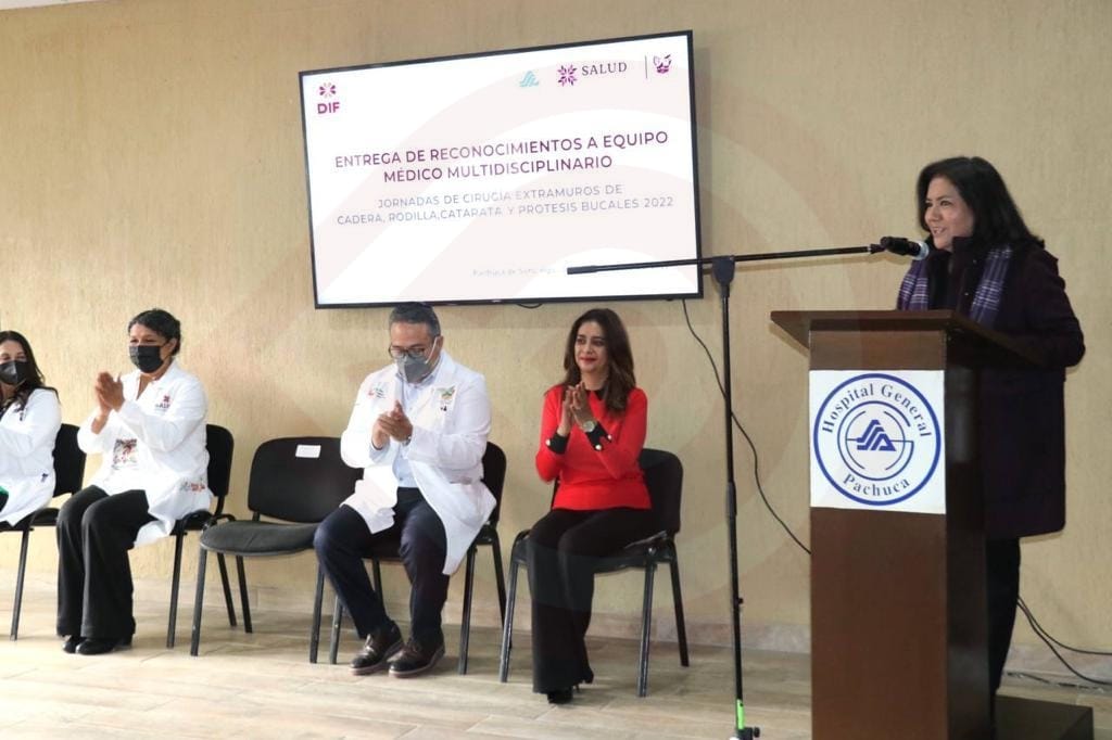 Ante la titular de la Secretaría de Salud, Zorayda Robles Barrera, y el director del Hospital General de Pachuca, Antonio Vázquez Negrete, la presidenta del Patronato del DIF Hidalgo manifestó el enorme compromiso y disposición del sistema que representa para trabajar en conjunto con las y los profesionales de la salud en beneficio de las personas que más lo necesitan.