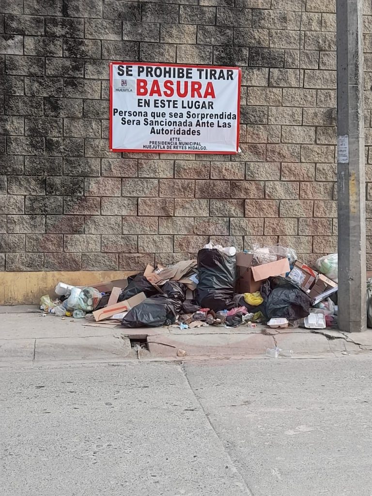 Huejutla, Hgo. – A pesar de los letreros de “Prohibido tirar basura” que se han colocado estratégicamente en el área, de manera inconsciente ciudadanos huejutlenses tiran la basura en la banqueta.