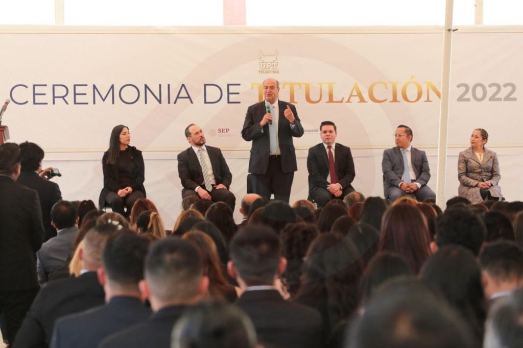 En su oportunidad, el rector de la Universidad Politécnica de Tulancingo, Oswaldo Del Villar Furiati, indicó que es un gusto que los 197 profesionales que recibieron su título y concluyeron esta importante etapa de su formación académica lo hagan con la convicción de que forman parte del cambio de era que vive el estado, “ustedes egresados y egresadas son agentes de cambio que, con sus conocimientos, vocación e inteligencia serán parte de la hazaña que se gesta en el estado, a fin de atender primero al pueblo”.