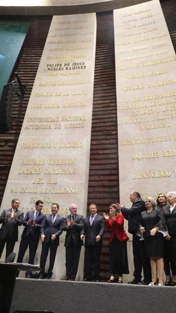 Pachuca de Soto, Hgo. – Inscriben con letras de oro en el muro de honor de la Cámara de Diputados el nombre del General Felipe Ángeles. A dicho acto asistió el gobernador de Hidalgo, Julio Menchaca Salazar, acompañado de familiares del revolucionario oriundo de Zacualtipán de Ángeles.