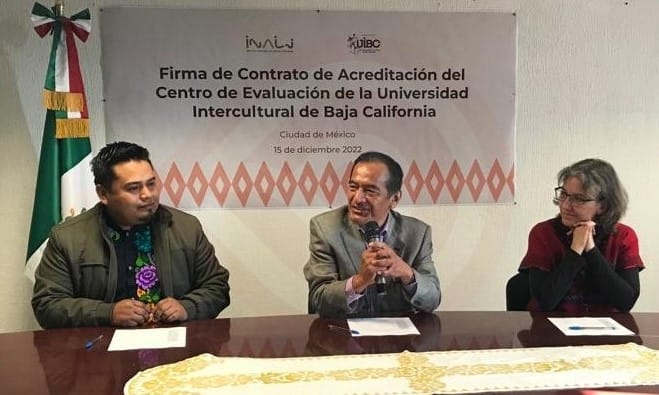 Ciudad de México. – Con el objetivo de establecer las bases y condiciones generales de coordinación y colaboración para facultar al Centro de Evaluación de la Universidad Intercultural de Baja California (UIBC) para evaluar con fines de certificación a personas hablantes de lenguas indígenas de la región y a población migrante que se encuentra radicando en el estado, el Instituto Nacional de Lenguas Indígenas (Inali) y la Universidad suscribieron un contrato de acreditación.