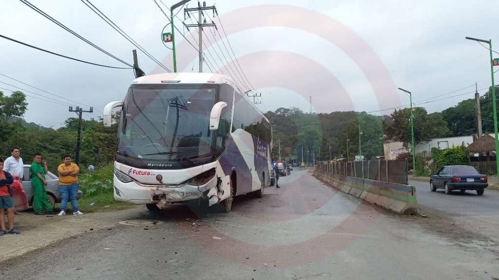 Huejutla, Hgo. – Dos personas adultas y dos menores de edad resultaron heridos tras haberse estrellado frontalmente contra un autobús de la línea Futura cuando circulaban presuntamente a exceso de velocidad en su automóvil.