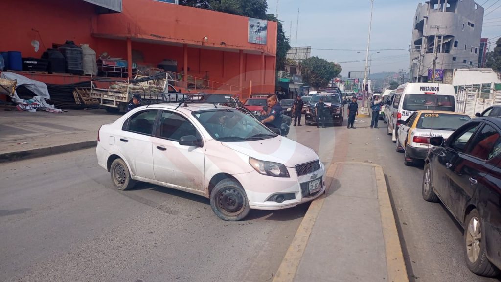 Huejutla, Hgo.- Un percance automovilístico que se registró este viernes, en el bulevar central de la carretera México – Tampico, casi frente al depósito de conocida empresa cervecera, dejó como saldo solo daños materiales y un hombre detenido, que presuntamente quiso evadir su responsabilidad y se comportó agresivo al ser intervenido por efectivos de Seguridad Pública Municipal.