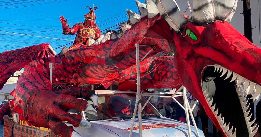 El desfile tuvo como principal atracción el gigantesco dragón, mismo que recorrió diversas calles con bocanadas de humo y rugidos.