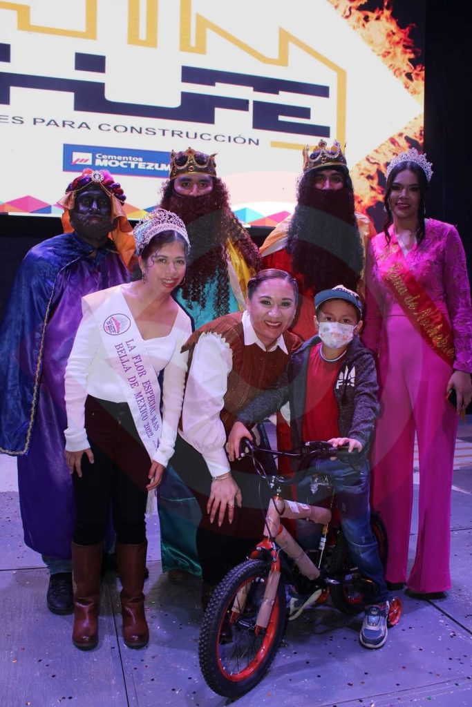 La presidente Honoraria del Sistema DIF Municipal, Carol Guadalupe Lara Flores, encabezó junto a su familia, el magno festejo en donde se concentraron alrededor de tres mil personas en el teatro del pueblo, durante el cual, junto a Melchor, Gaspar y Baltazar hicieron entrega de grandes sorpresas, dulces, pelotas, bicicletas y muchos regalos más.
