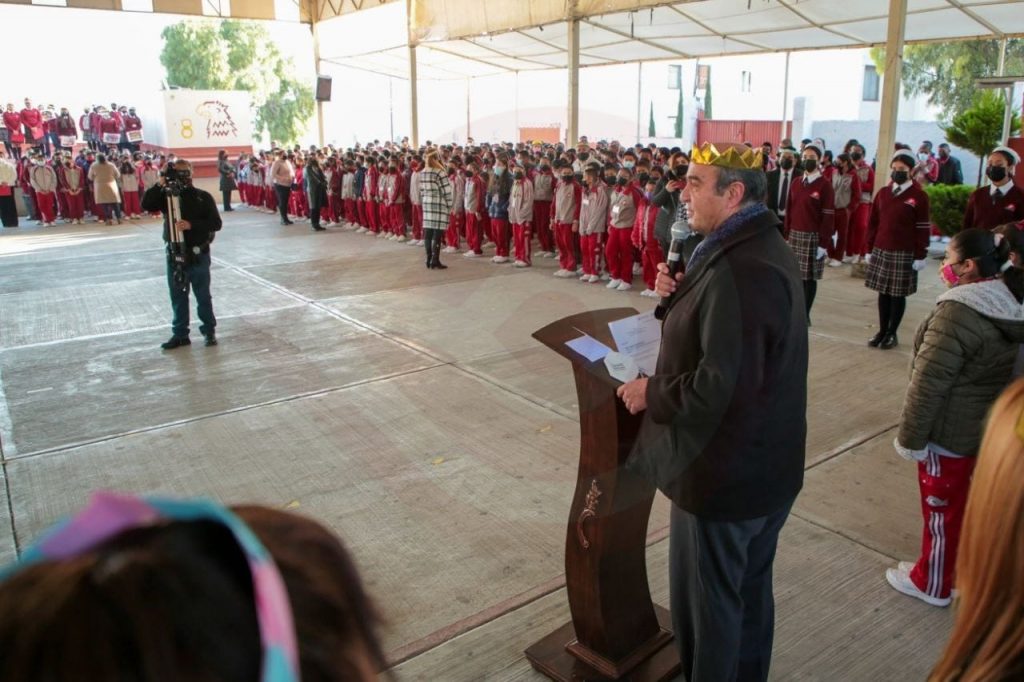 Pachuca de Soto, Hgo. – El secretario de Educación Pública de Hidalgo, Natividad Castrejón Valdez, visitó esta mañana la Escuela Secundaria General No. 8 “Maestros de México”, ubicada en la colonia 11 de Julio de Mineral de la Reforma, donde participó en la ceremonia del primer lunes cívico del 2023, tras reanudarse las clases en todos los niveles y modalidades de Educación Básica.