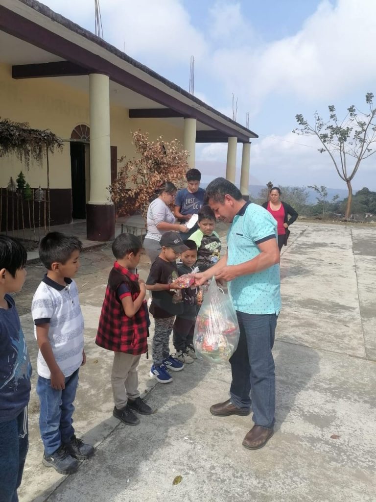 El edil acudió a las escuelas de preescolar y primaria de la comunidad de Zacatipa, donde los alumnos recibieron un aguinaldo de parte de él y la titular del Sistema DIF local, lo cual fue agradecido por los padres de familia.