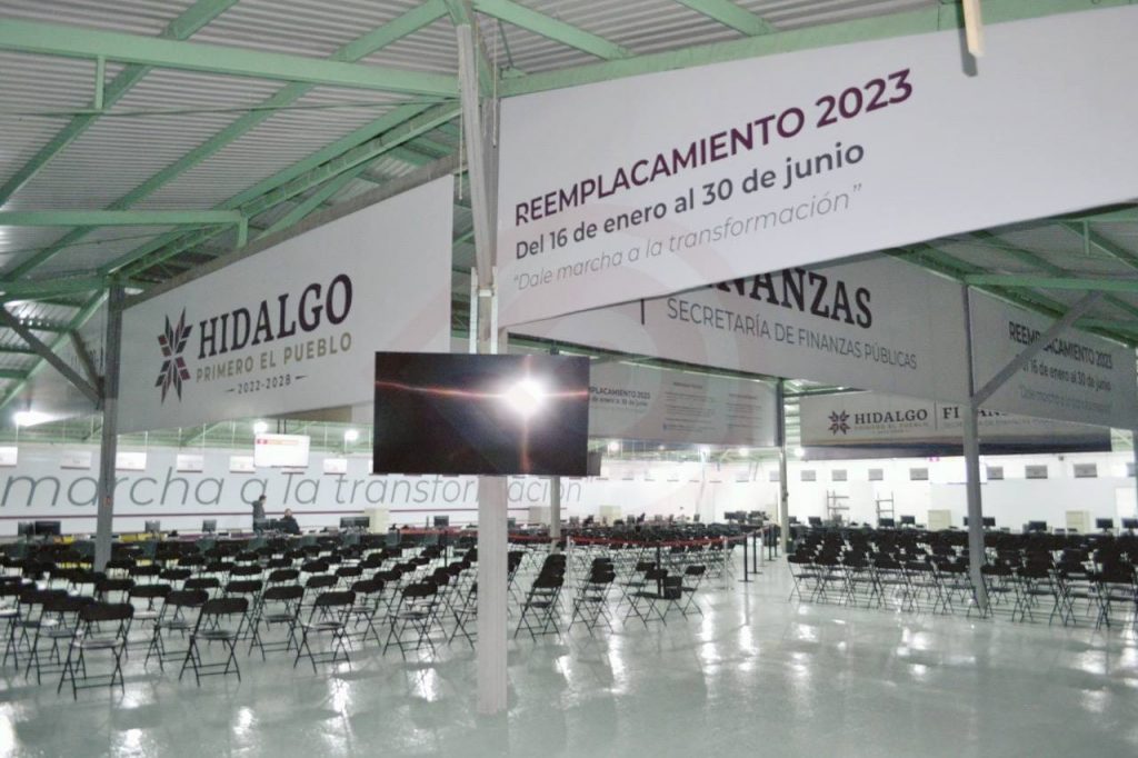 Pachuca de Soto, Hgo. – Personal e instalaciones del Macrocentro de Reemplacamiento 2023 y de las oficinas Hidalgo Pagos se encuentran preparadas para dar atención presencial a las y los contribuyentes en el programa “Dale marcha a la Transformación”, que estará vigente hasta el 30 de junio, informó la Secretaría de Finanzas Públicas.
