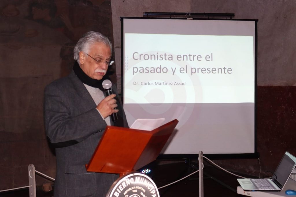 Finalmente, el investigador Carlos Martínez Assad presentó la conferencia magistral “Cronista: entre el pasado y el presente”, ante las y los cronistas de los municipios de Acaxochitlán, Apan, Atitalaquia, Atotonilco el Grande, Cardonal, Cuautepec de Hinojosa, El Arenal, Francisco I. Madero, Huasca de Ocampo, Huehuetla, Ixmiquilpan, Molango, Pachuca, Progreso de Obregón, San Agustín Tlaxiaca, Santiago de Anaya, Tasquillo, Tetepango, Tepeapulco y Xochicoatlán.