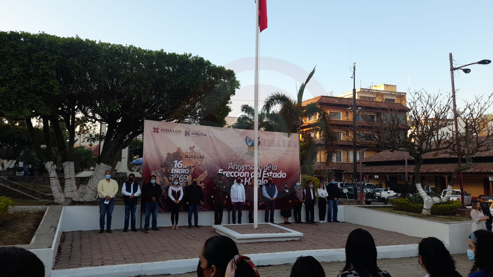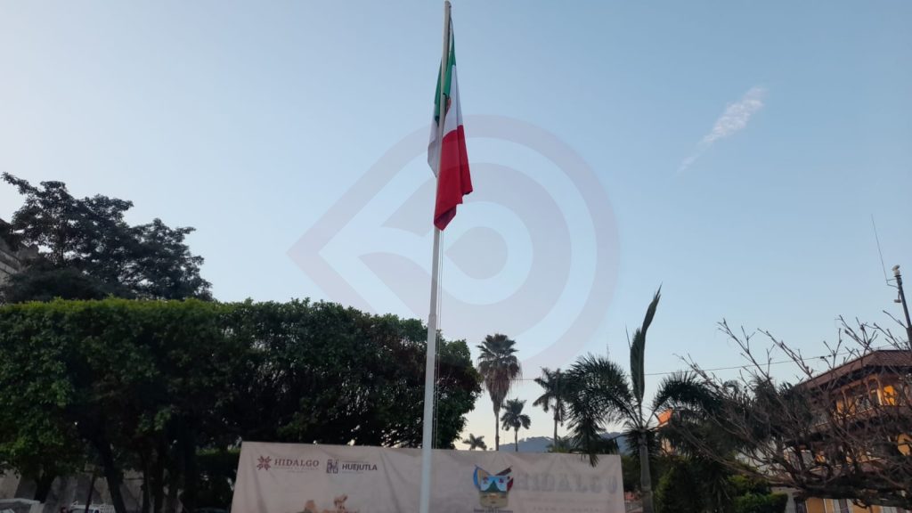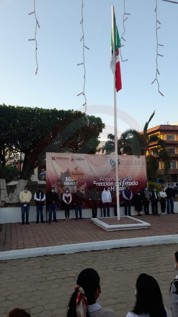 Huejutla, Hgo. – Autoridades municipales izaron la bandera a toda asta en la plaza del Reloj Municipal de Huejutla, durante la mañana de este lunes 16 de enero, con motivo del 154 aniversario de la erección del estado de Hidalgo.