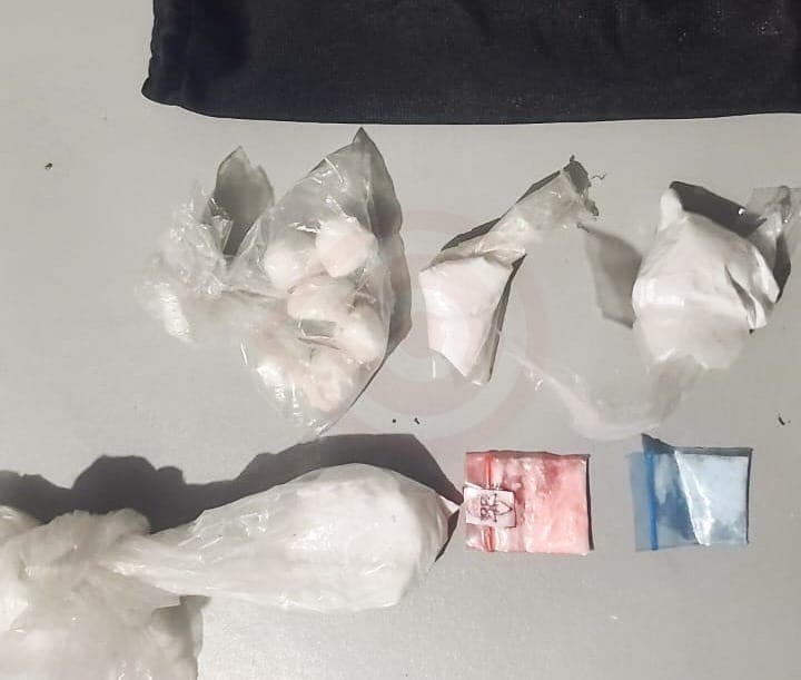 Tras la salida del inmueble, la madre de los niños y su pareja, agredieron a las autoridades con su vehículo, razón por la cual fueron intervenidos y en revisión les fueron hallados cuatro envoltorios de plástico con polvo similar a la cocaína y dos bolsas pequeñas con sustancia granulada con las características de droga sintética (cristal).