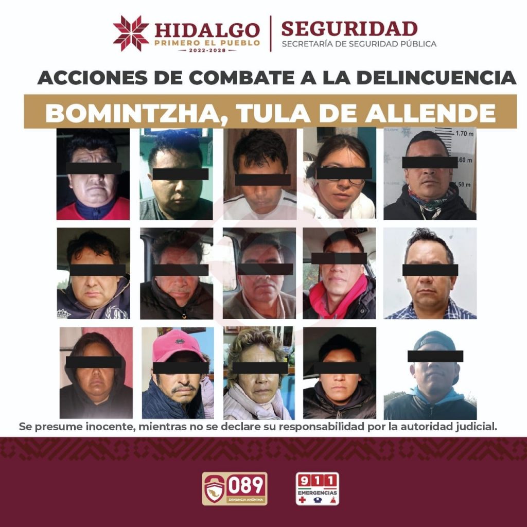 Pachuca de Soto, Hgo. – La mañana de este jueves, se desmantelaron de manera simultánea: cinco centros de almacenamiento y distribución de hidrocarburo en la localidad de Bomintzha, perteneciente al municipio de Tula de Allende; donde también halló dinero en efectivo y sustancias ilícitas, por lo que se aseguraron a 15 personas para continuar con las investigaciones.