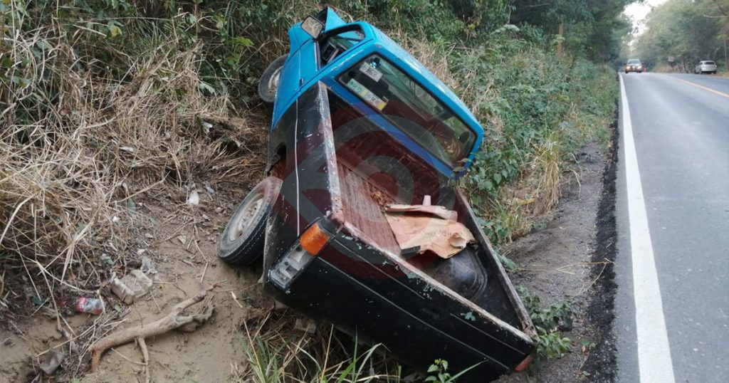 El accidente de tránsito terrestre sucedió en el tramo de la carretera Huejutla-Chalma, donde una camioneta de color azul con negro de modelo atrasado, terminó en la pared de un cerro, luego de que el conductor perdió el control del volante.