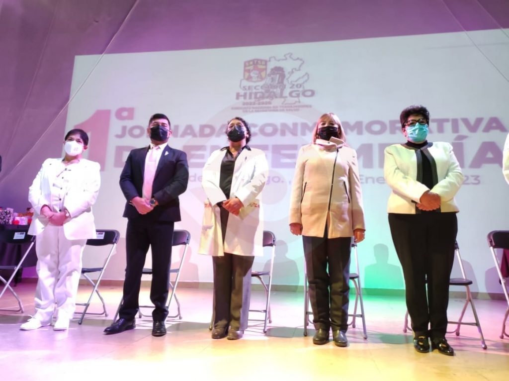 Pachuca de Soto, Hgo. – En reconocimiento al rol social que desempeña, en las distintas unidades de atención médica, el personal de enfermería de la Secretaría de Salud de Hidalgo (SSH) fue reconocido en un evento encabezado por la titular de la SSH, María Zorayda Robles Barrera y quien asistió a los trabajos de la 1.a Jornada Conmemorativa de Enfermería SNTSA 2023.
