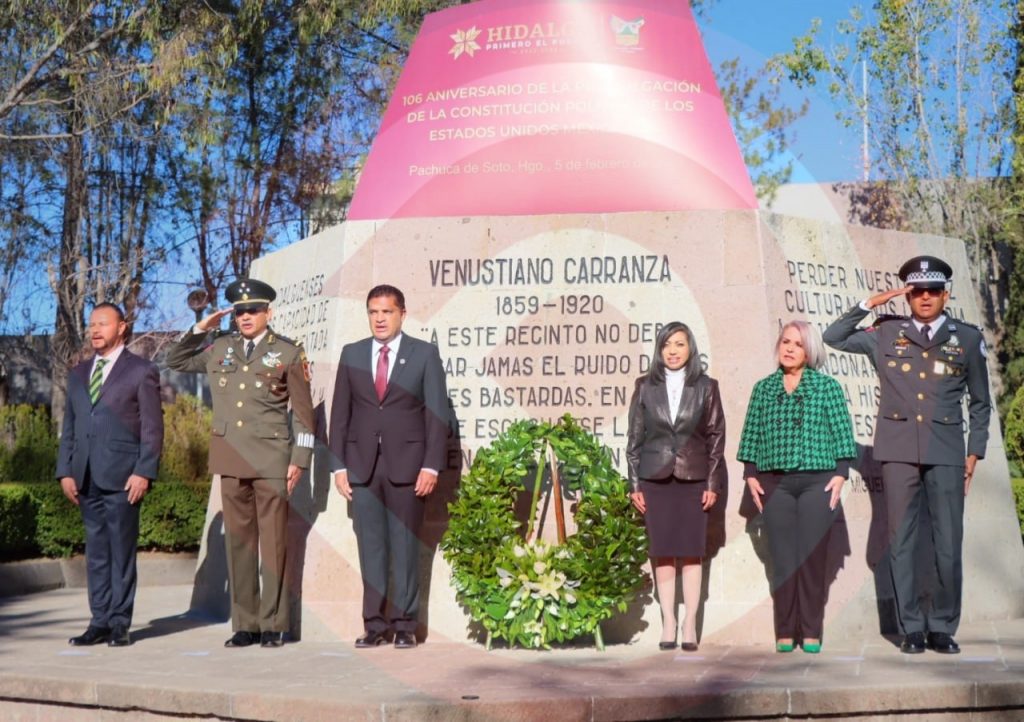 Pachuca, Hgo.- Se llevó a cabo el evento conmemorativo del 106 Aniversario de la Promulgación de la Constitución Política de los Estados Unidos Mexicanos, con el propósito de hacer una reflexión sobre lo que hemos logrado como nación, con una visión de justicia e igualdad de oportunidades sin distinción.