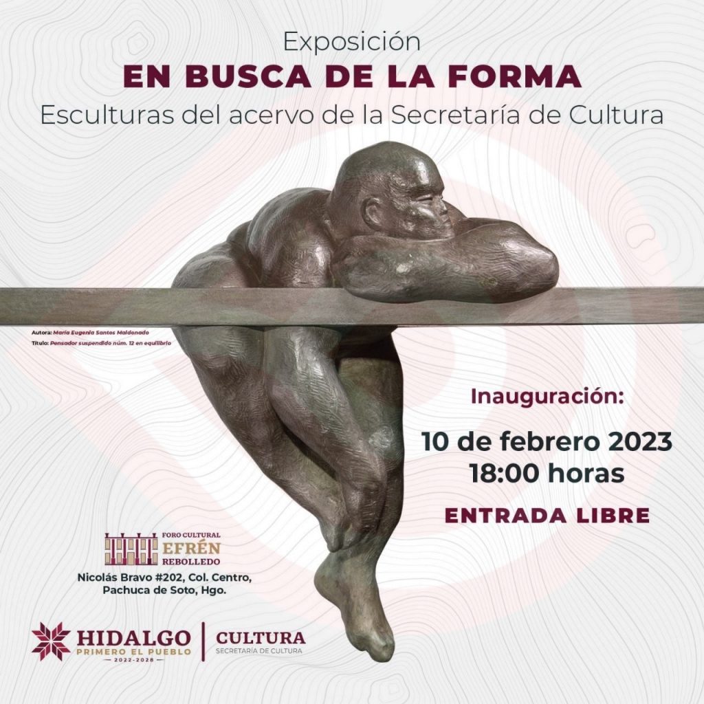 Pachuca, Hgo.- La Secretaría de Cultura de Hidalgo, dirigida por Tania Meza Escorza, informó que inaugurará la exposición “En busca de la forma” el viernes 10 de febrero, a las 18:00 horas, en el Foro Cultural Efrén Rebolledo.