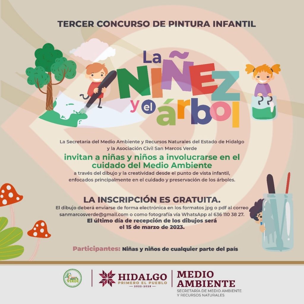 Pachuca, Hgo.- La Secretaría de Medio Ambiente y Recursos Naturales de Hidalgo (Semarnath) en coordinación con la asociación civil San Marcos Verde A.C. dieron inicio a la convocatoria para el tercer concurso de pintura infantil “La niñez y el árbol”.
