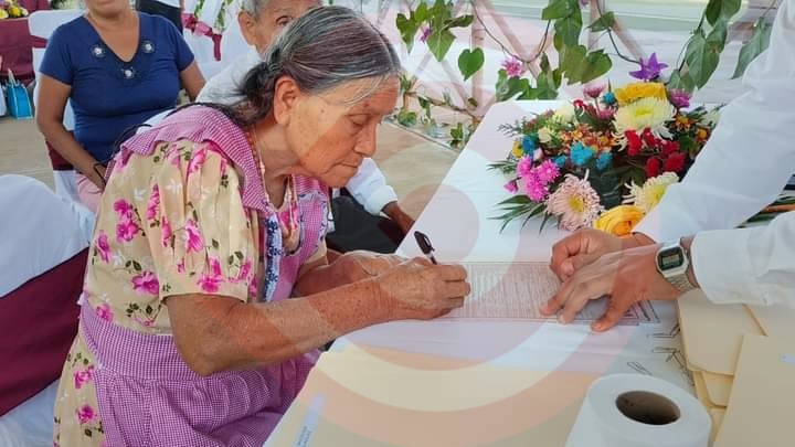 El acto inició alrededor de las 12:30 de la tarde cuando las parejas y sus familiares se concentraron en ese lugar y al ritmo de la banda de viento las autoridades municipales enfloraron a los contrayentes para después iniciar con las bodas colectivas y firmar su unión.