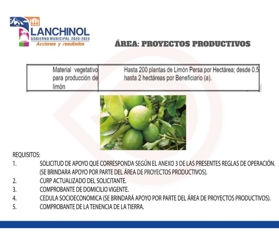 Tlanchinol, Hgo.- El gobierno municipal Tlanchinol 2020-2024 da a conocer a la población que en base a las reglas de operación, emitidas por parte de la Secretaría de Desarrollo Agropecuario para el ejercicio 2023, la dirección de Proyectos Productivos de esta administración estará recabando la documentación para realizar el trámite correspondiente ante la dependencia sobre los rubros del campo