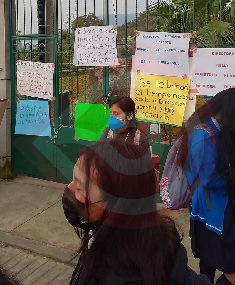 Los protestantes solicitan la intervención del director general del CECyTEH para que les resuelvan sus demandas y destitución de la directora de la escuela y mientras no haya respuesta, la institución permanecerá cerrada.