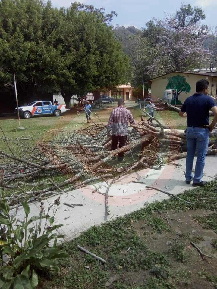 Xochiatipan, Hgo. – Por indicaciones del alcalde Óscar Bautista Gutiérrez y a petición de docentes y padres de familia, personal de Protección Civil Municipal realizó la tala de un árbol que se encontraba dentro de la escuela Telesecundaria de la localidad de Ohuatipa.