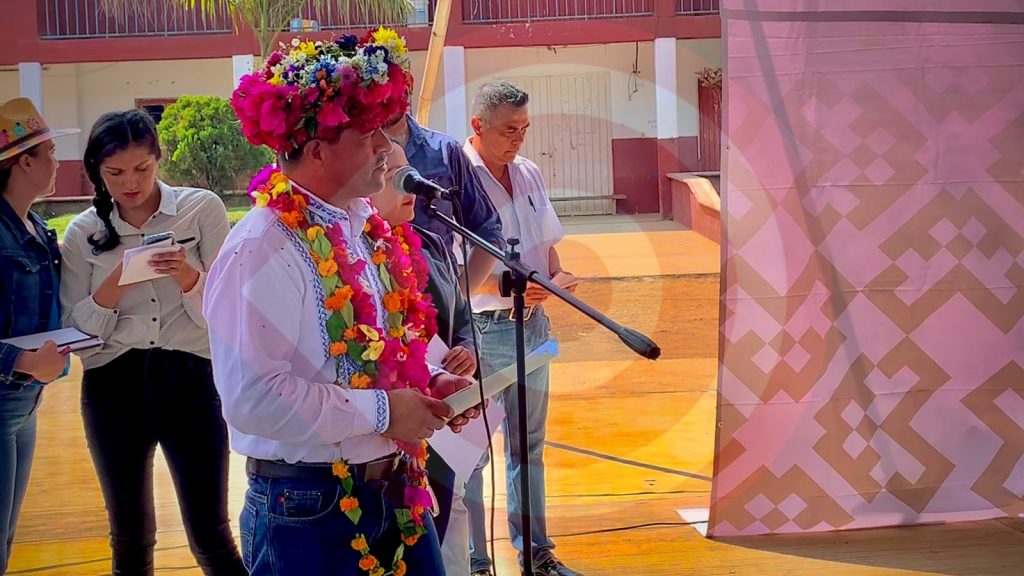 Tlanchinol, Hgo.- Esta mañana el Secretario de Desarrollo Agropecuario Napoleón González Pérez acompañado de su equipo de trabajo, del alcalde municipal Marcos Bautista Medina, regidores de la asamblea municipal y autoridades de la comunidad, realizaron el acto protocolario para llevar a cabo capacitaciones que impulsen a las mujeres indígenas.