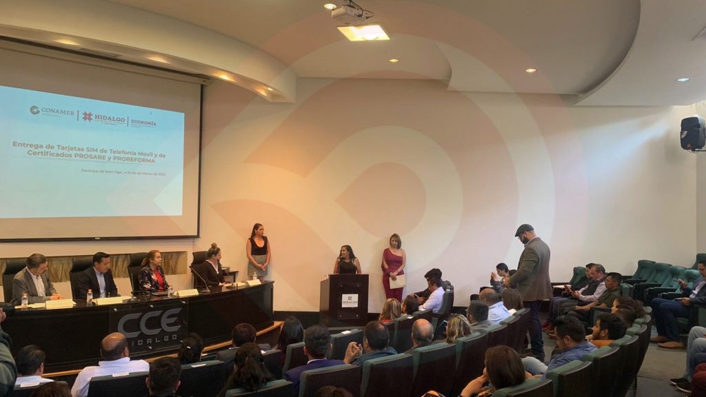 Tlanchinol, Hgo.-  Este martes en las Instalaciones del Consejo Coordinador Empresarial Hidalgo en la Ciudad de Pachuca de Soto, Hgo. Se llevó a cabo la entrega de tarjetas SIM de telefonía móvil y de certificados PROSARE Y PROREFORMA por parte de la Comisión Estatal de Mejora Regulatoria del estado de Hidalgo.