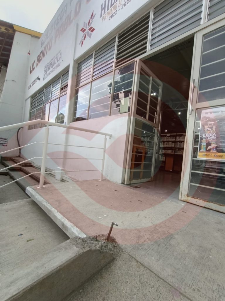 Una vez concluido el evento al ser cuestionados, personal de la Biblioteca manifestó que esa varilla pertenecía a un barandal que se encontraba en el acceso a este recinto, pero cuando el pasamanos fue retirado dejaron ese fierro salido.