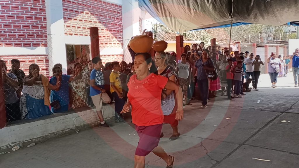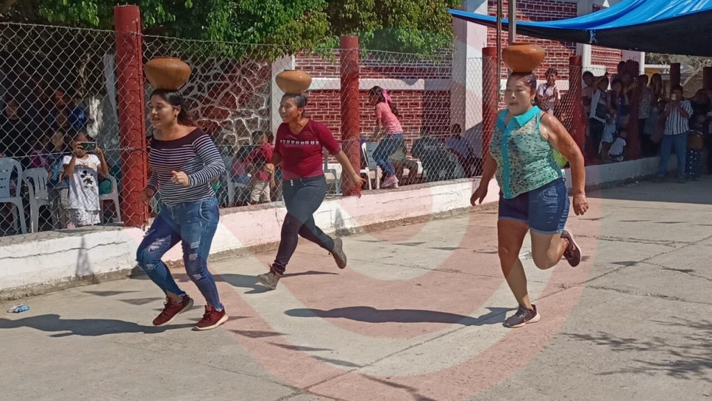 Como parte del entretenimiento para propios y extraños, se retomó la carrera de olla de barro con agua, la cual consiste en portar el jarro en la cabeza de las mujeres, partir desde la línea de salida y llegar a la meta.