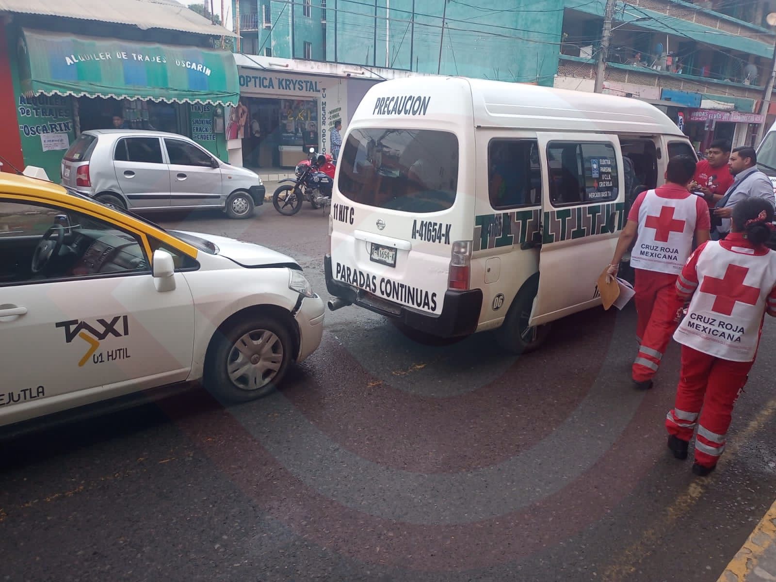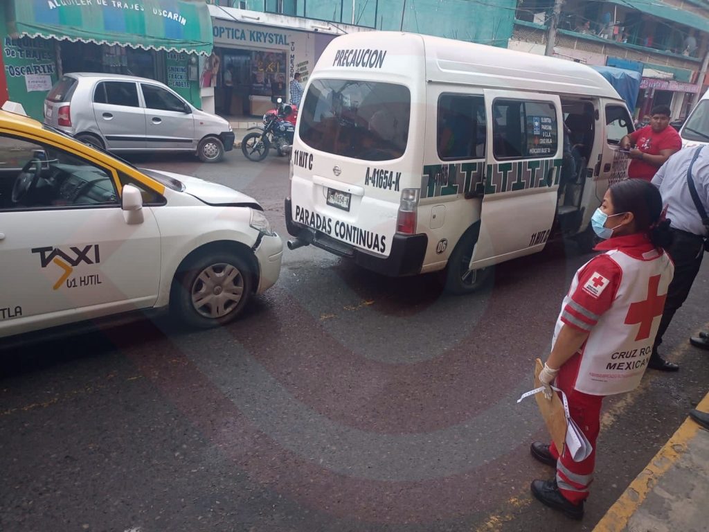 Huejutla, Hgo.- Un choque por alcance entre un taxi y una combi pasajera, que se registró la tarde de este martes en la zona Centro de esta ciudad, dejó como saldo al menos dos personas lesionadas.