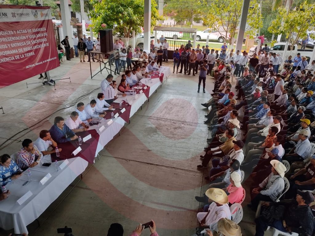 Jaltocán, Hgo.- Con el compromiso de crear mejores oportunidades en materia agraria y gracias a la gestión y apoyo del Gobierno del Estado de Hidalgo, este jueves 30 de marzo se llevó a cabo la entrega de credenciales y actas de asamblea de órganos de representación y vigilancia de núcleos agrarios,  así como la entrega de escrituras públicas del Programa de Regularización de Tenencia de la Tierra a vecinos de las diferentes localidades que pertenecen a la región.