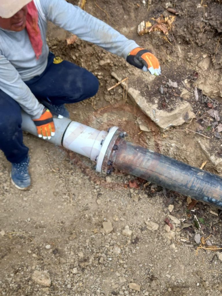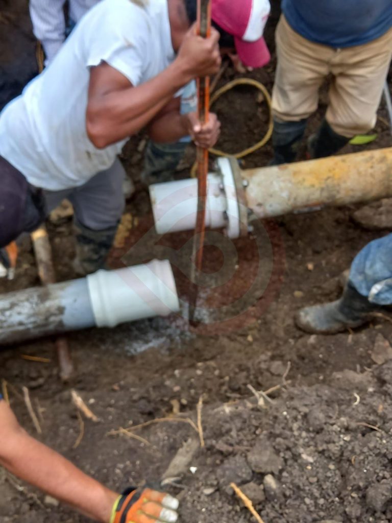 A pregunta expresa, detalló que la tubería rota era de material PVC, y estaba a ras de tierra, por lo que el accidente vino a beneficiar, ya que se bajó metros más y se cambió por galvanizado en un tramo aproximado de diez metros.