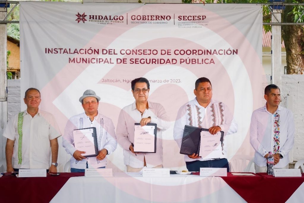 Jaltocán, Hgo.- Como parte de la gira de trabajo que encabezó este jueves el Secretario de Gobierno, Guillermo Olivares Reyna, por la región 02 Huejutla, se llevó a cabo en el municipio de Jaltocán la reunión de Coordinación Estatal para la Construcción de Paz y Seguridad, así como la instalación y primera sesión del Consejo de Coordinación Municipal de Seguridad Pública.