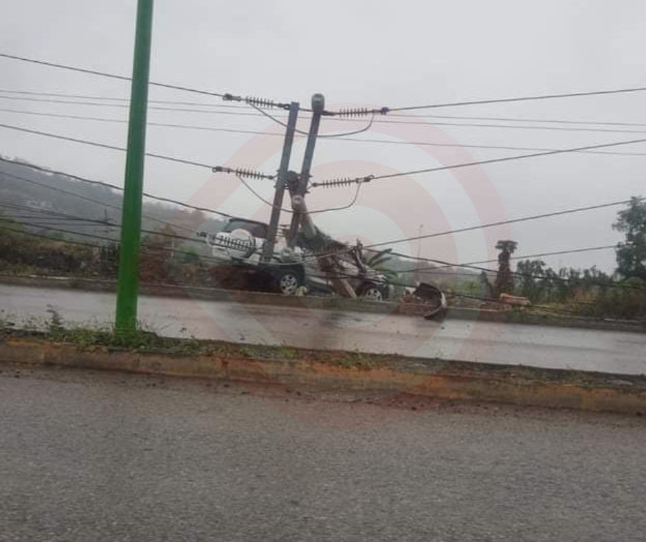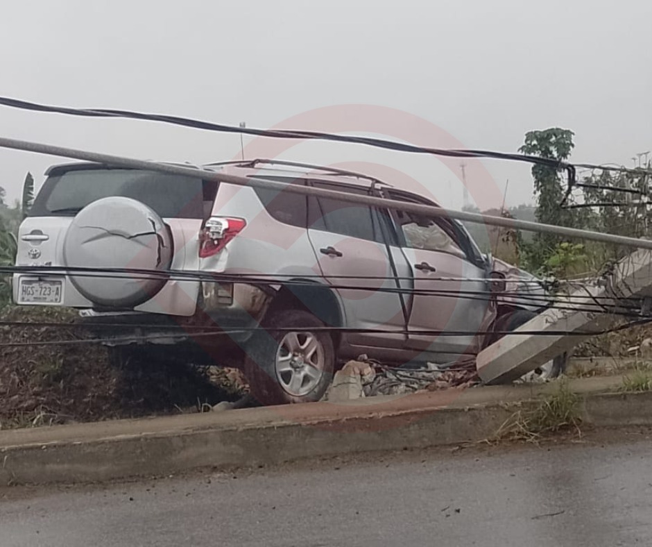 La unidad presuntamente se desplazaba a exceso de velocidad y al llegar a una curva, cruzó el carril contrario y terminó impactada contra el poste de concreto.