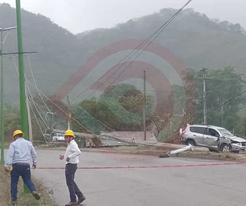 Huejutla, Hgo.- La tarde de este jueves Santo, se registró un aparatoso accidente en la vía federal México-Tampico, donde el conductor de una camioneta se salvó de morir electrocutado tras chocar, derribar un poste y líneas de alta tensión de la Comisión Federal de Electricidad (C.F.E.).