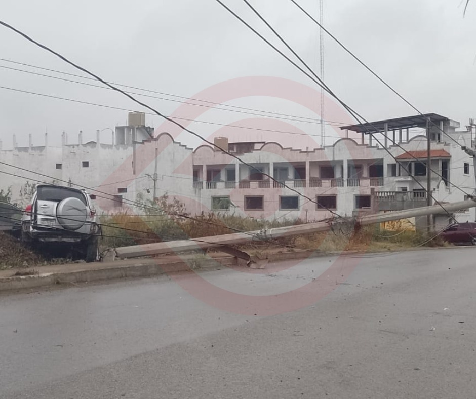 >>>Cafre del volante chocó y derribó un poste de la C.F.E., en la vía federal México-Tampico.