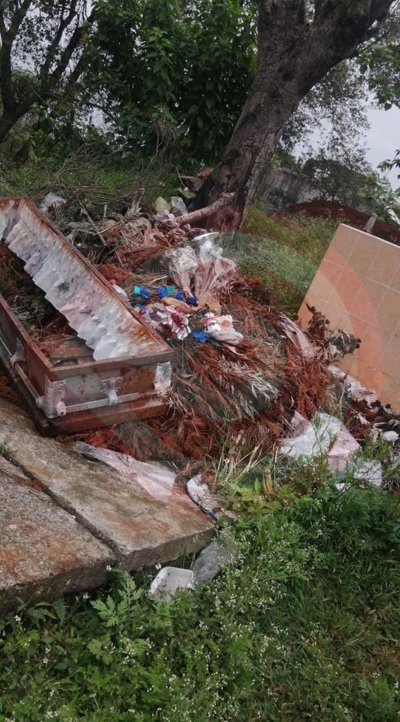 Trascendió que por problemas internos entre el gobierno municipal y vecinos de Barrio Bajo, en días pasados una familia decidió realizar la sepultura de un familiar y abrieron una tumba donde habrían extraído el ataúd de un difunto, para sepultar otra persona en ese lugar, dejando el ataúd tirado al aire libre.