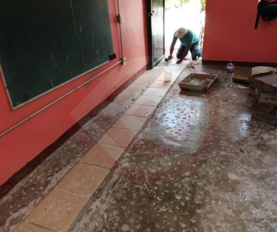 Xochiatipan, Hgo. – La presidencia municipal que dirige Óscar Bautista Gutiérrez, a través de la dirección de Obras Públicas y en coordinación con el departamento de Operatividad, realiza la colocación de loseta en un aula escolar.