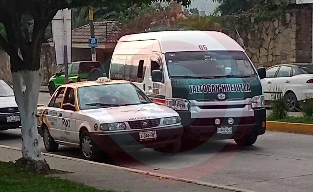 Huejutla, Hgo.- Debido a la imprudencia del operador, una combi pasajera de la ruta Jaltocán – Huejutla, chocó contra un taxi del sitio Huejutla.