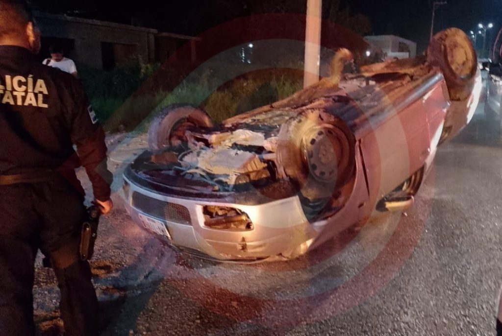 La unidad motora derrapó en una curva, chocó contra un poste de alumbrado público y volcó sobre la cinta asfáltica hasta quedar con las llantas hacia arriba.
