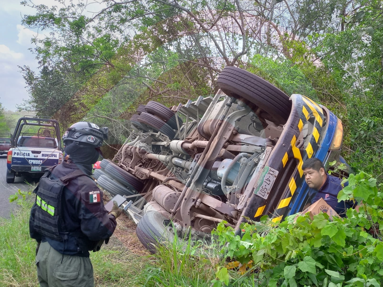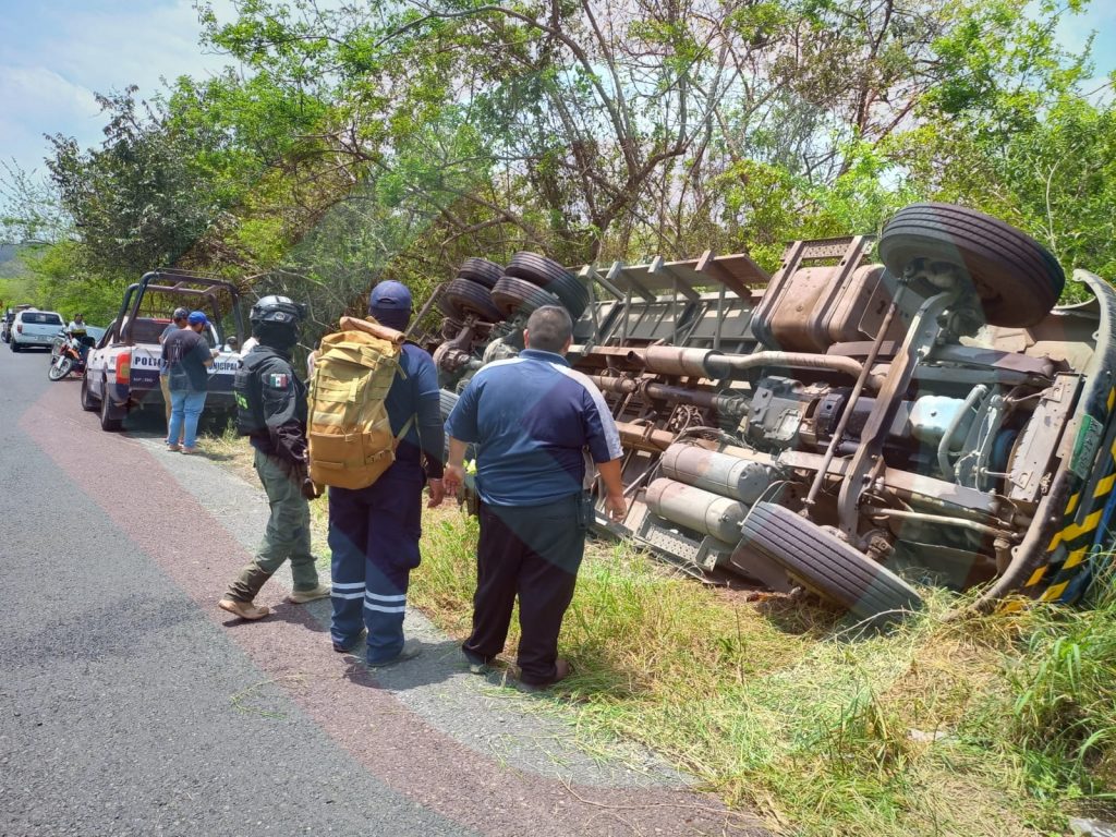 Derivado de la volcadura de la enorme “mole”, dos tripulantes quedaron con lesiones de consideración y al sitio arribaron elementos de la Comisión Nacional de Emergencias, así como agentes de la Guardia Nacional División Caminos.
