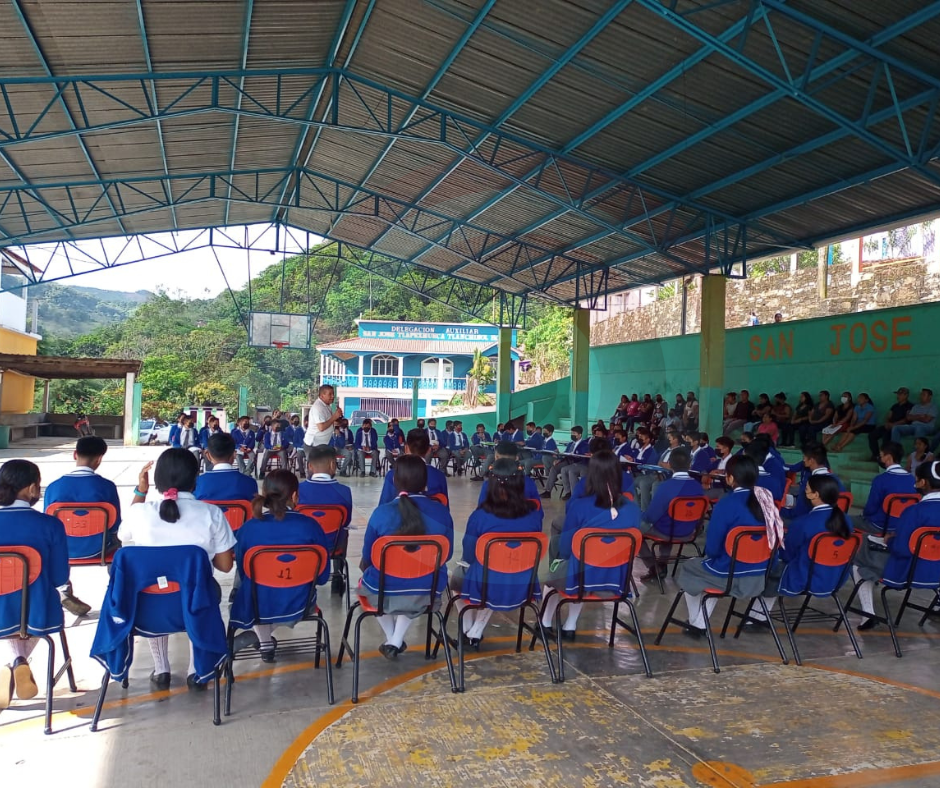 Tlanchinol, Hgo.- Este 24 de abril personal de la Dirección de Seguridad Pública y Tránsito Municipal de Tlanchinol, llevó a cabo una conferencia en la localidad San José, impartiendo el tema “Adicción, violencia y prevención”.