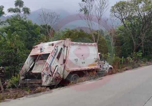Jaltocán, Hgo. – La mañana de este jueves, un camión recolector de la basura del municipio de Huejutla, se salió de la carretera en la vía federal Álamo-Tamazunchale.