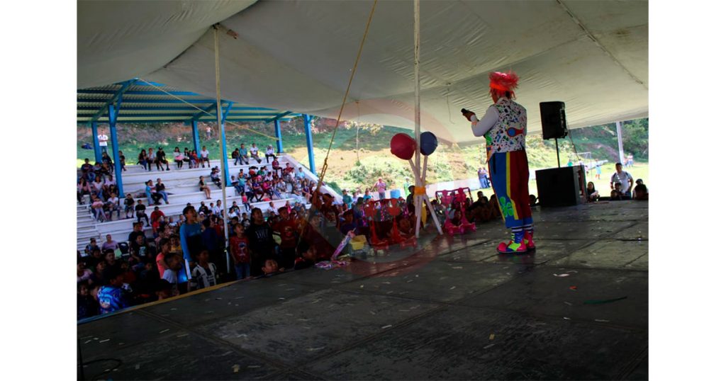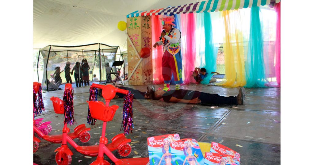Por la tarde, antes de concluir las actividades, se presentó un divertido show de payasos y magia, además de que cada niño recibió un obsequio y dulces.