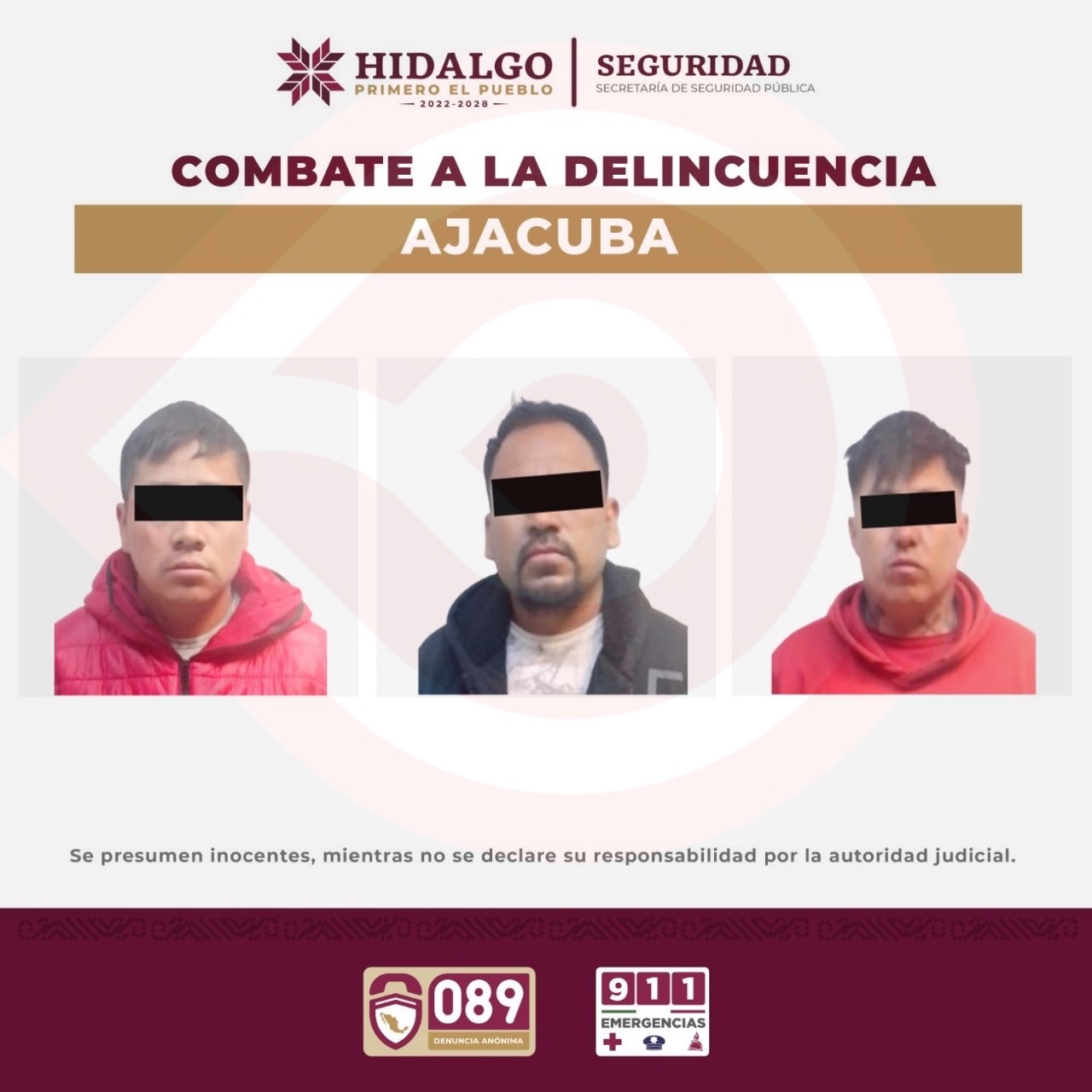 Con videovigilancia, ASEH detiene a tres sujetos relacionados con robo en Ajacuba